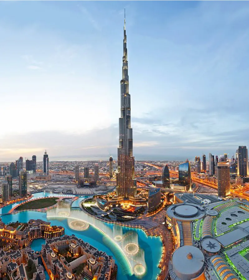 برج خلیفه با ارتفاع ۸۲۸ متر، بلندترین سازه جهان است و طراحی آیرودینامیکیاش در برابر بادهای شدید منطقه مقاومت بالایی دارد. شالوده آن روی بستر صخرهای مستحکم ساخته شده و دارای سیستم ضدلرزهای مدرن است. استفاده از بتن تقویتشده و فولاد خاص، استحکام آن را افزایش داده است. طراحی Y شکل برج، لرزشها را کاهش میدهد. این برج نماد پیشرفت مهندسی در برابر شرایط سخت محیطی است.